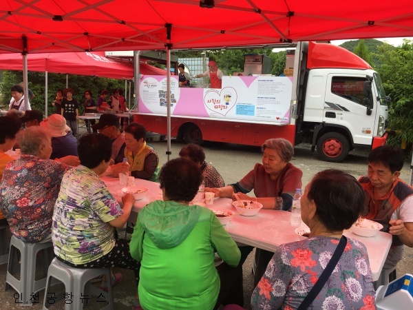 한국SNS연합회가 운영하는 ‘사랑의 짜장차’가 지난 10일 무의도를 방문, 대무의도 복지회관에서 어르신 약 100여명을 초대하여 짜장면을 대접했다.