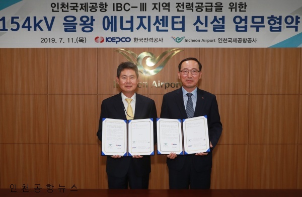 인천공항공사는 인천공항 IBC(국제업무지구)-Ⅲ 지역의 안정적인 전력공급을 위해 지난 11일 한국전력공사 경인건설본부와 ‘인천공항 IBC-Ⅲ 지역 전력공급을 위한 을왕 에너지 센터 신설 업무협약’을 체결했다고 밝혔다.