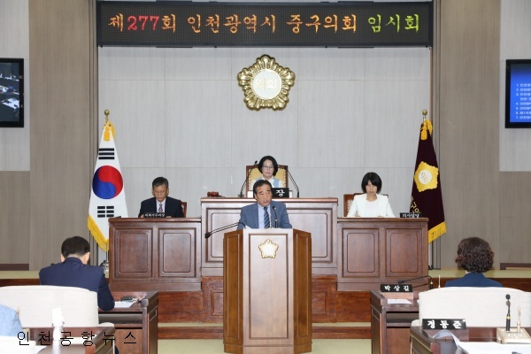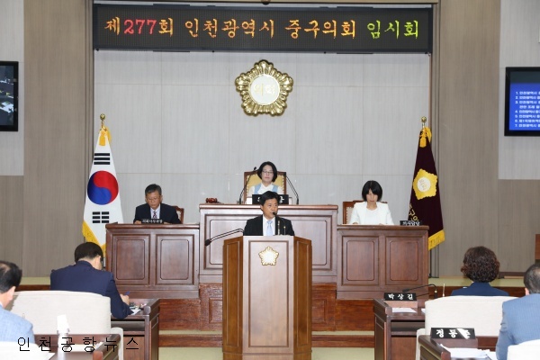 지난 18일 폐회한 중구의회 제277회 임시회 제2차 본회의에서 정동준 부의장은 5분 자유발언을 통해 전 구청장 일가 소유지가 밀집한 마시안 해변 인근 700m 도로개설계획에 대한 의혹을 제기했다.