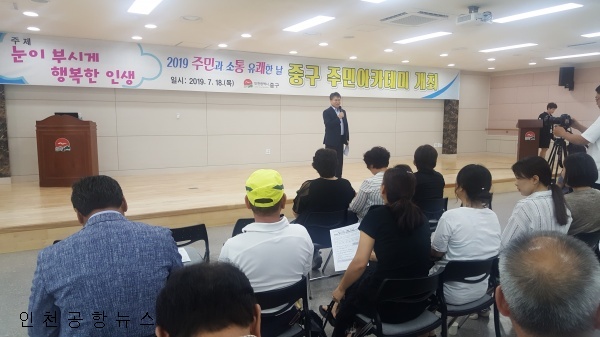 홍인성 인천 중구청장이 지난 18일 운서동에서 ‘주민과 소통·유쾌한 날’ 행사를 가졌다.