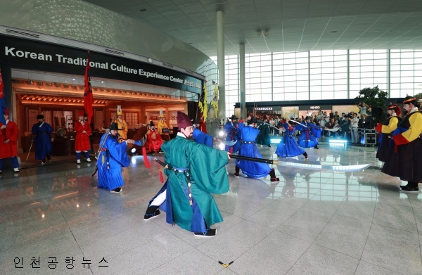 아울러 인천공항 수문장 교대식과 제식훈련을 포함해 부채춤 등 전통공연을 선보이며 인천공항을 찾은 국?내외 여객들에게 한국 전통문화를 알리는 계기를 마련했다.