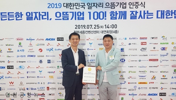 반도체 패키징 및 테스트 전문 기업인 인천공항 자유무역지역 내 제이셋스태츠칩팩코리아(대표이사 김원규)가 지난 25일 '2019 대한민국 일자리 으뜸기업'으로 선정됐다.