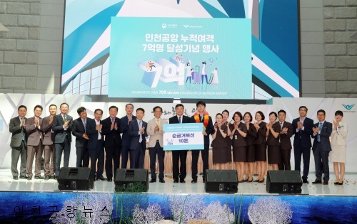 인천국제공항공사는 지난 14일 인천공항 제1여객터미널에서 누적 여객 7억 명 달성 기념행사를 개최했다고 밝혔다.