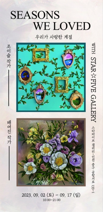 두 화가가 화려한 계절의 순간을 담은 작품을 선보이는 전시회가 열린다. 조이슬 작가와 배여진 작가는 9월 2일부터 17일까지 스타파이브카페 갤러리에서 ‘SEASONS WE LOVED’(우리가 사랑한 계절) 展을 연다.