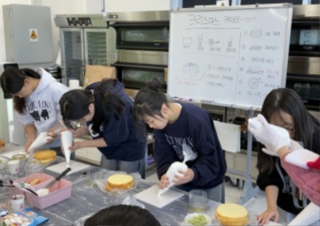볼링 게임이 끝난 후에는 영종 바리스타 제빵학원으로 자리를 옮겨 크리스마스 홀케이크를 만들 준비를 했다. 깨끗하게 손을 씻은 후 제빵사 선생님의 설명을 들은 후 케이크를 만들기 시작했다. 케이크 토핑 재료로 딸기, 청포도, 마시멜로우, 초코 과자 등 다양하게 있어 학생들은 각자의 개성에 따라 자유롭게 케이크를 만들었다. 마지막에 친구들과 케이크 모양을 비교해보며 친구들과의 추억을 사진으로 담았다.