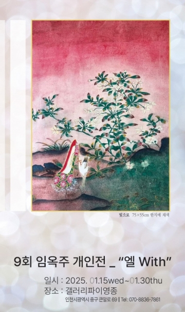 우리 전통의 아름다움을 화폭에 담는 임옥주 작가의 아홉 번째 개인전 '엘 With'展이 갤러리 파이영종에서 열린다. 이번 전시에는 전통의 문양을 비롯해 화초와 풍경을 그린 수묵화에 신데렐라의 구두를 얹어놓은 인상적인 작품 30점이 전시된다.
