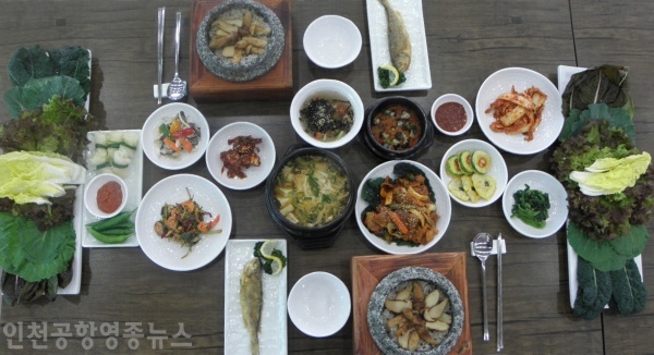 대표음식인 송이돌솥밥의 송이는 경북 봉화농협에서 영종농협으로 직송한 100% 자연산이다. 모두 그날 그날 새로 구입해 쓰며 쌈밥에 사용하는 야채도 늘 6 종류 이상으로 유지되도록 한다. 손님들이 대부분 영종용유권 이웃들이거나 공항에서 십여 년 동락을 같이 해온 사람들이기에 가급적 가정식의 느낌을 내려고 노력한다. 그래서 밥이나 찬, 야채는 무한 리필이 가능하다.