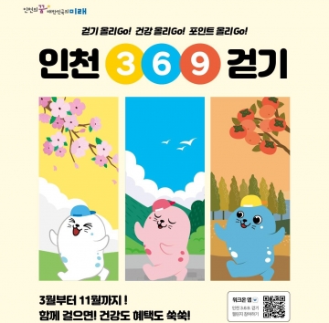 ‘인천 3.6.9. 걷기 챌린지’는 오는 11월까지 매월 운영되며, 인천 시민이라면 누구나 참여할 수 있다. 자세한 사항은 인천시 누리집에서 확인할 수 있다.