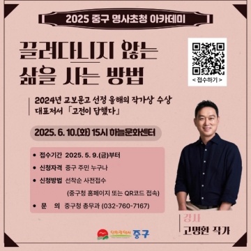 - 중구 명사초청 아카데미, 6월 10일 하늘문화센터에서