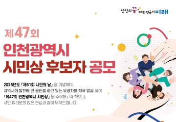 - 인천시, 제47회 시민상 후보자 공개 모집