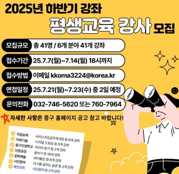 중구 평생학습관 ‘하반기 프로그램 강사 모집’