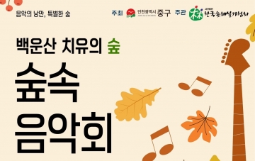 중구는 문화와 나들이의 계절 가을을 맞이해 오는 11월 1일 오후 2시부터 백운산 치유의 숲(운남동 산120-1)에서 ‘백운산 치유의 숲 숲속음악회’를 개최한다.