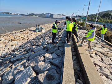 해설을 마친 뒤 학생들은 육교를 건너 해변가로 이동해 장갑과 집게를 들고 본격적인 쓰레기 수거에 나섰다. 바위 틈에 깊숙이 끼어 있는 쓰레기를 꺼내는 일은 쉽지 않았지만, 친구들과 봉사단원들이 협력하며 하나씩 정리해 나갔다.