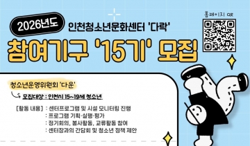 인천청소년문화센터 ‘다락’, 15기 참여기구 모집