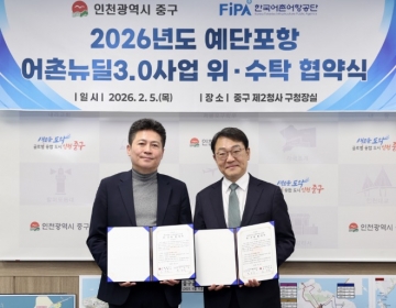 중구는 5일 오전 중구 제2청 구청장실에서 김정헌 중구청장과 홍종욱 한국어촌어항공단 이사장이 참석한 가운데 ‘예단포항 어촌뉴딜3.0 사업 위·수탁 협약’을 체결했다고 밝혔다.