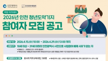 인천시는 청년의 취업역량을 강화하고 지역기업이 필요로 하는 실무형 인재를 양성하기 위해 ‘2026 인천 청년도약기지’ 사업 참여자 130명을 4월 29일까지 모집한다.
